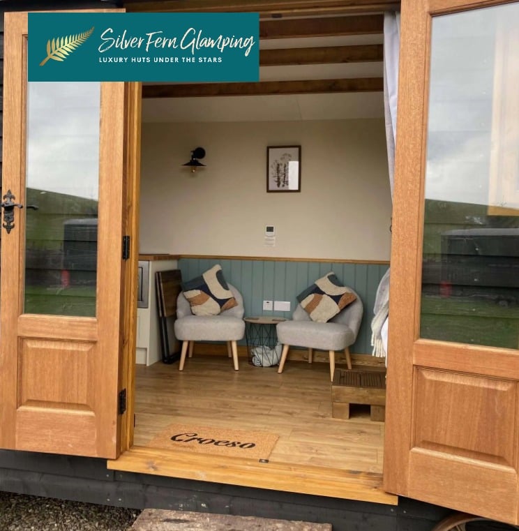 Luxury shepherds huts in beautiful rural west Wales.
